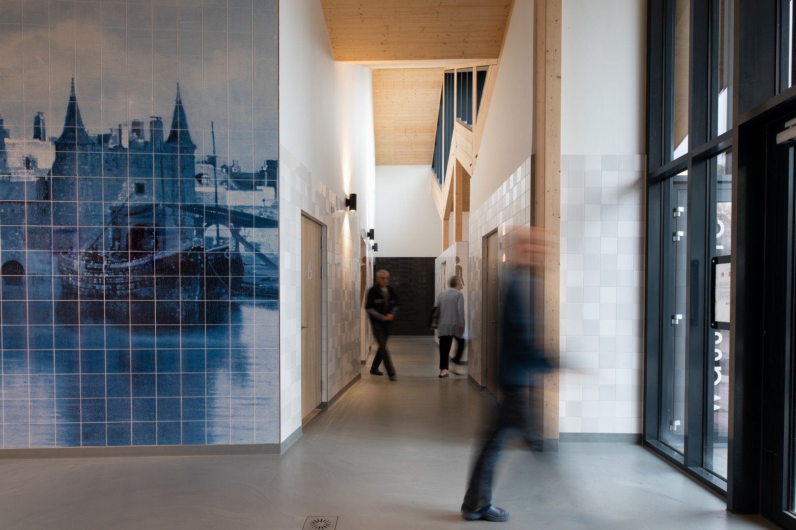 Bewundern Sie unser hochmodernes und nachhaltiges Sanitärgebäude mit einer wunderschönen Wand aus Delfter Blau-Fliesen. Was für ein Anblick!