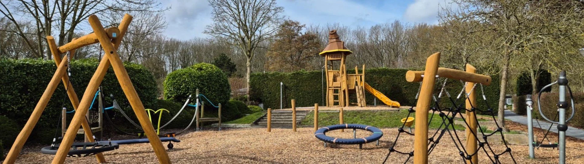 Mit einer großen Rutsche, Klettergerüsten, Schaukeln und vielem mehr können Kinder hier endlos spielen und entdecken.