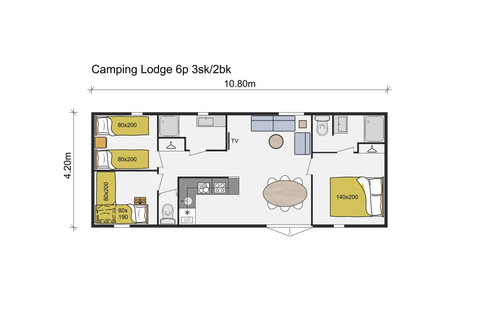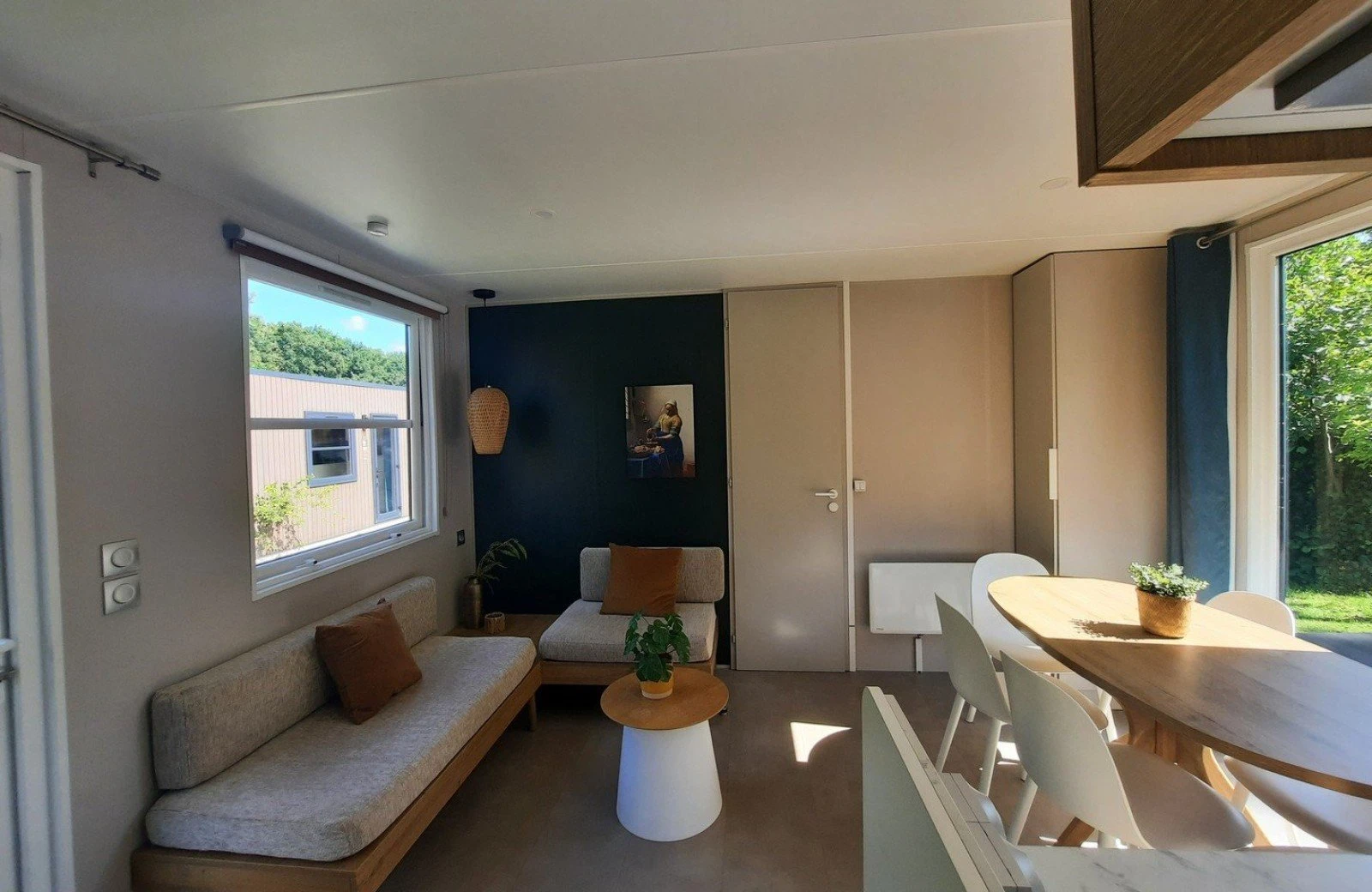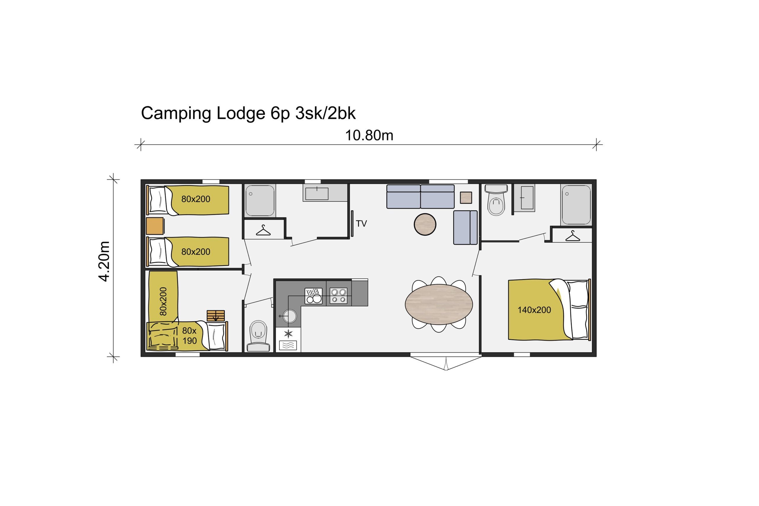 Diese luxuriöse Lodge bietet Platz für 6 Personen und ist ideal für Familien oder Gruppen von Freunden. Der eigentliche Pluspunkt? Die Lodge verfügt über zwei Badezimmer, sodass jeder seinem eigenen Rhythmus folgen kann. Darüber hinaus ist die Küche mit einem Geschirrspüler ausgestattet und die Veranda bietet einen schönen Ort, um gemeinsam zu sitzen. Genießen Sie Komfort, Privatsphäre und eine schöne Lage in der Nähe des Wassers.