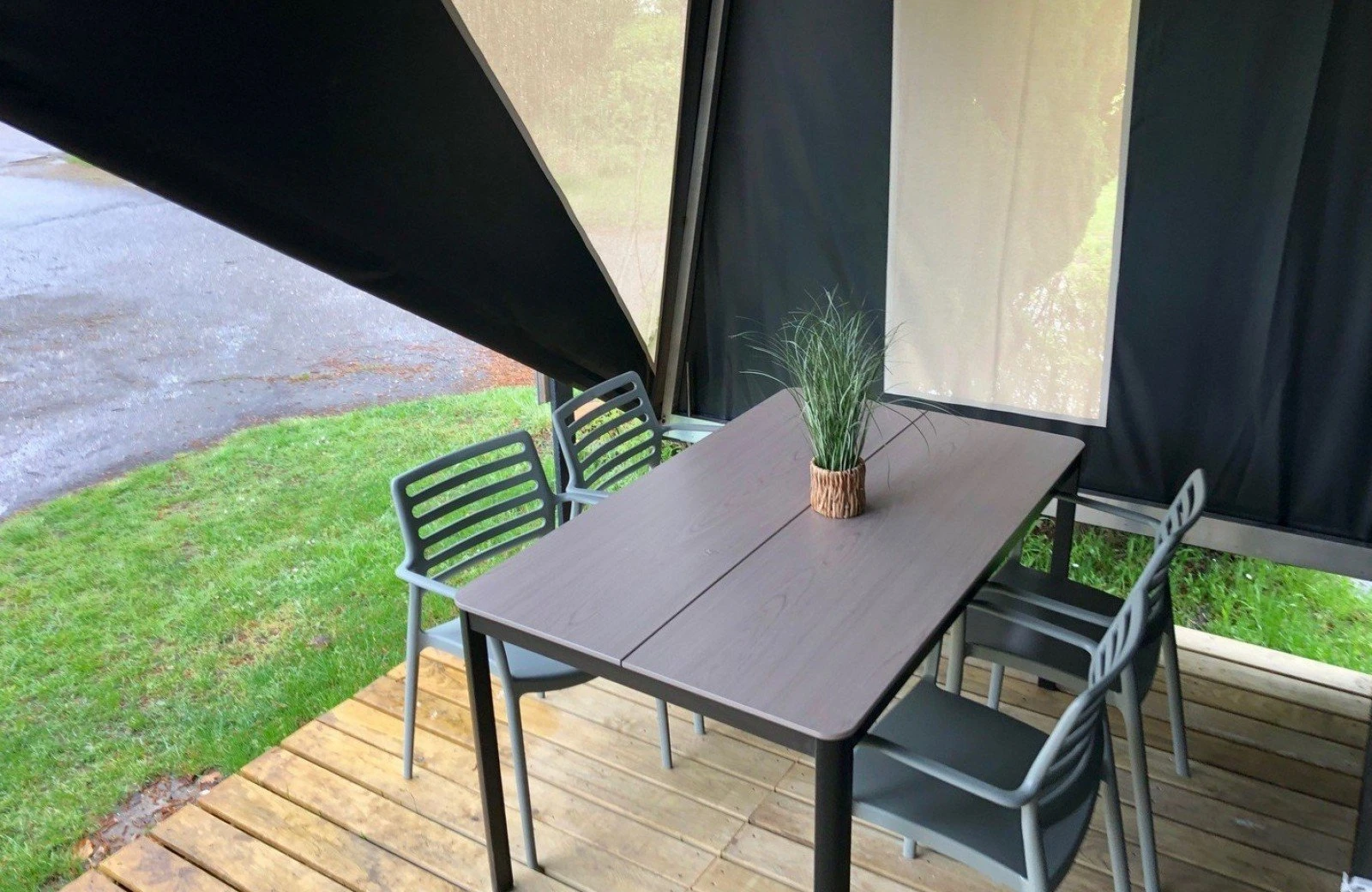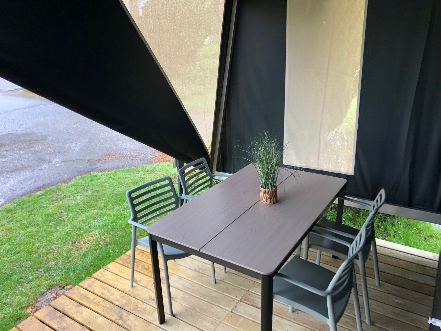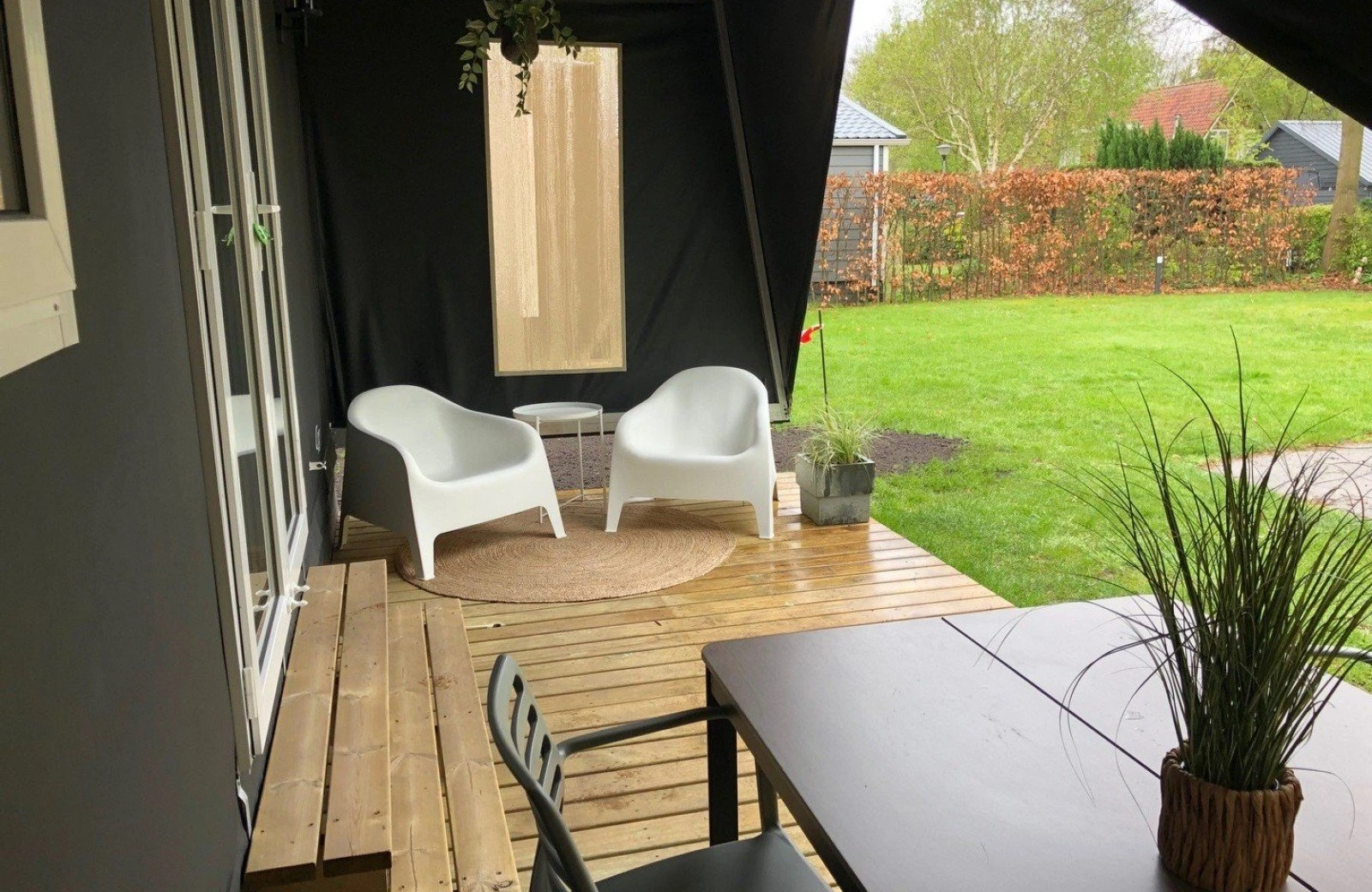 - Vollständig ausgestattet mit Tisch, Stühlen, Kissen, Heizung und Beleuchtung